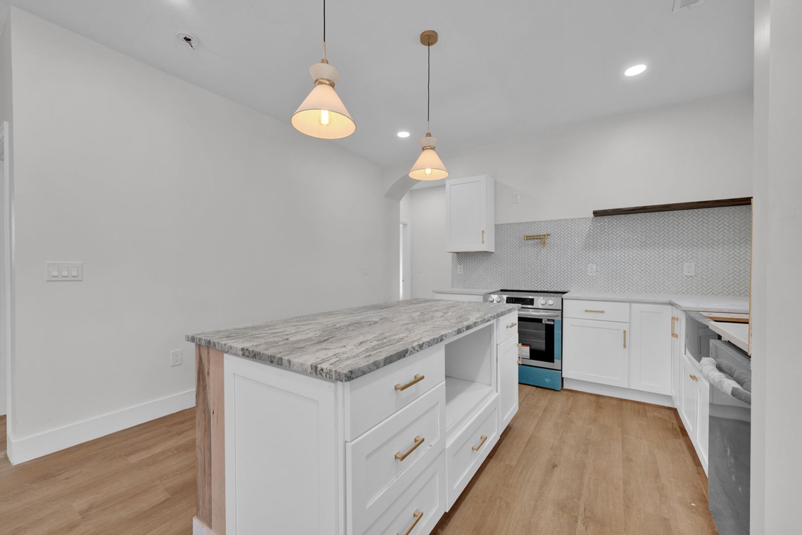 Absolutely gorgeous! This stunning 3 bedroom, 3 bathroom completely renovated rental is in a class of its own. Home features an open floor plan with numerous superior finishes - including hardwood flooring, custom plumbing and lighting fixtures. The kitchen is a dream! Home includes a stainless steel stove and dishwasher. The countertops are marble and the breakfast bar has a uniquely beautiful granite surface. The new cabinetry features soft close technology. All bedrooms are a generous size and boast outstanding closet space. Each bathroom is completely updated with the primary bedroom featuring a dual vanity sink and walkin in shower. Additional special touches are an actual mud room and a well place/ organized laundry room. Home has a spacious front porch as well as newdeck off the back yard. Minutes from interstate and downtown.